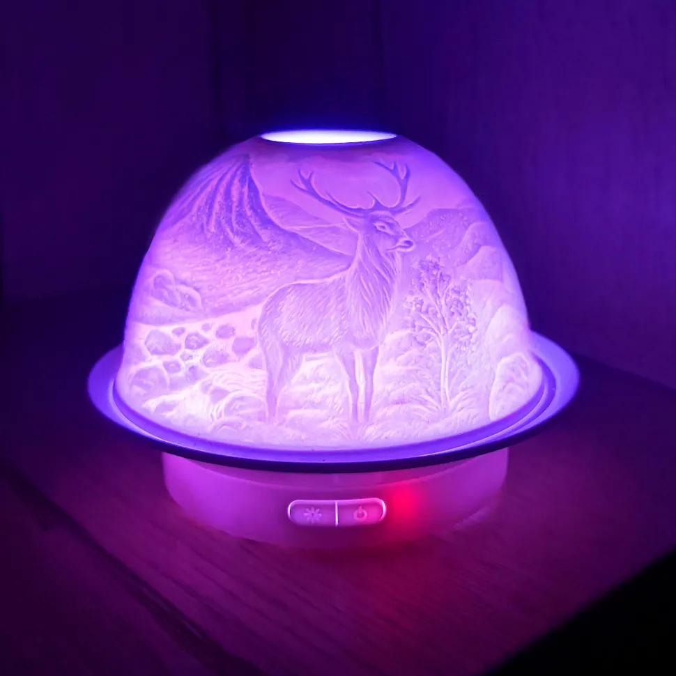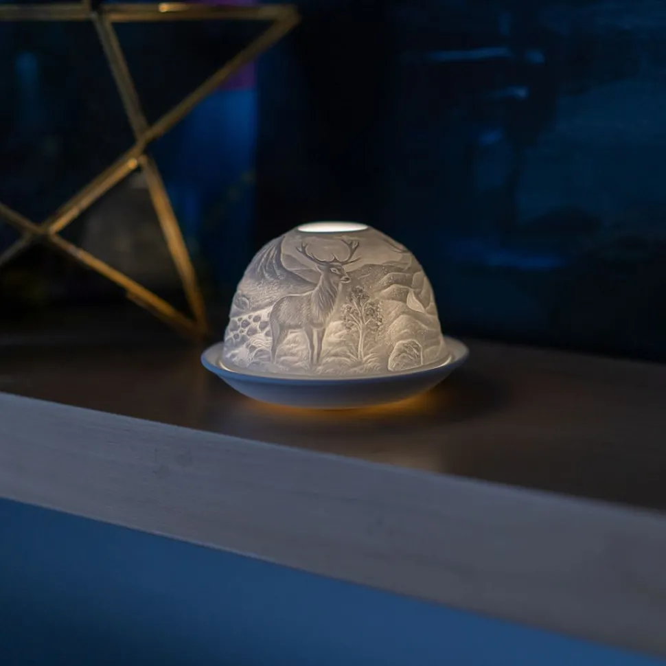 Our Tealight Domes are made from thin lithophane porcelain that illuminates your highland stag design when in use.