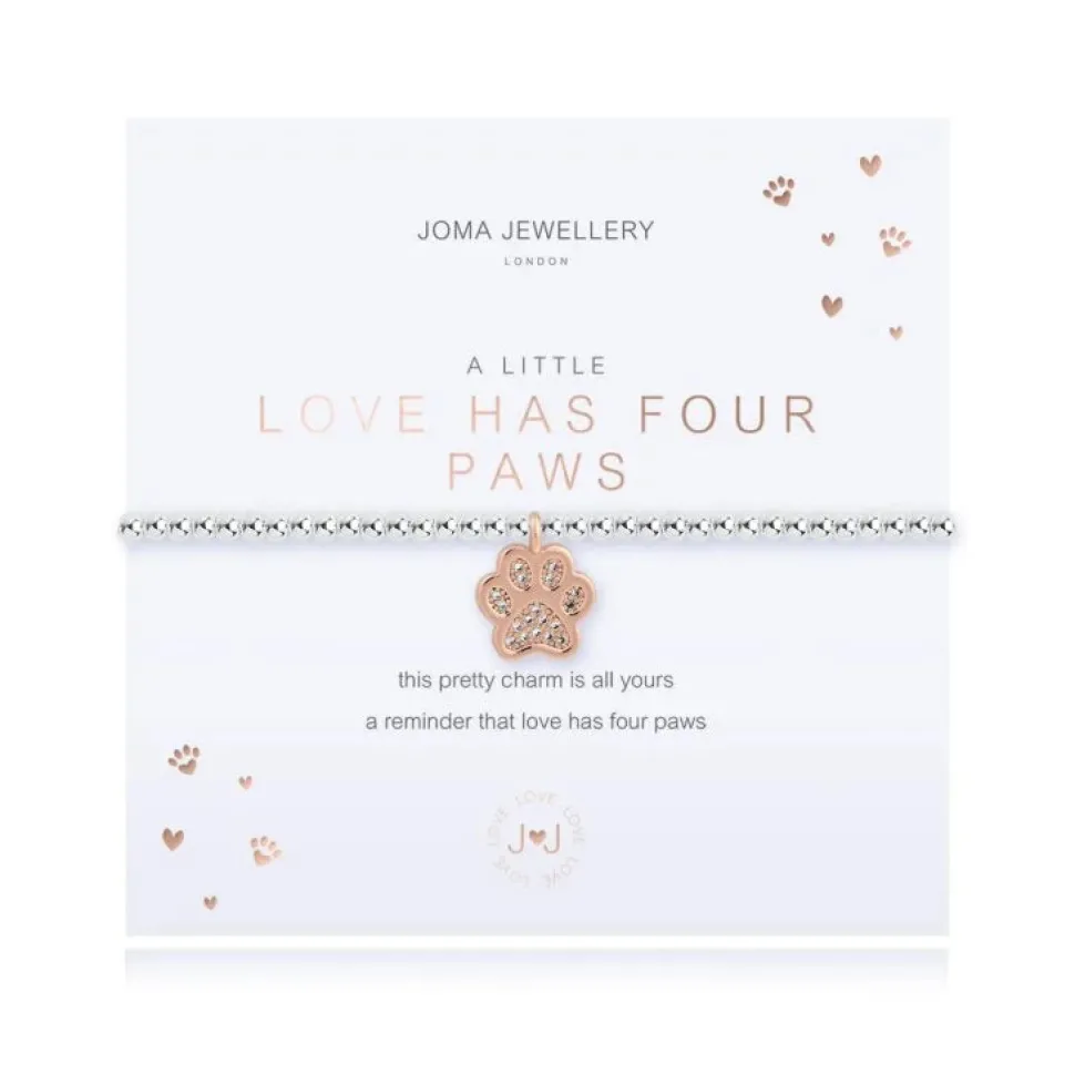 Joma Jewellery’s much loved ‘A Littles’ family has now expanded with these lovable new animal additions! This ‘Love Has Four Paws’ bracelet features a glistening rose gold and silver plated stretch design and the sweetest little paw charm. This stretch bracelet was designed to fit every wrist. To ensure the perfect gifting moment, every bracelet comes with a free Gift Bag, so you can gift pretty every time!